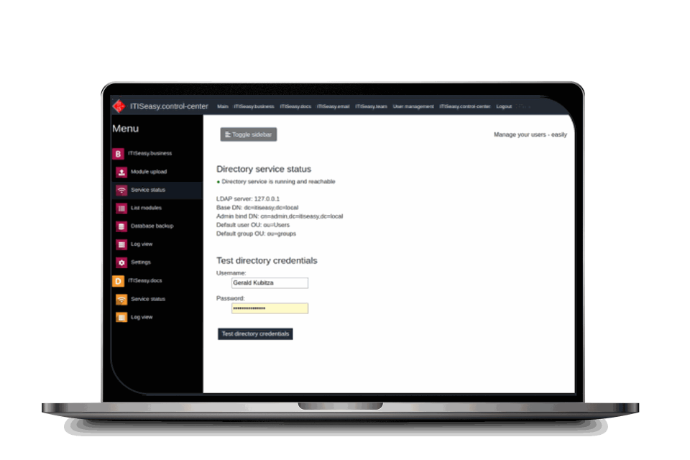 Experience full control of your business software suite with ITISeasy.control-center.