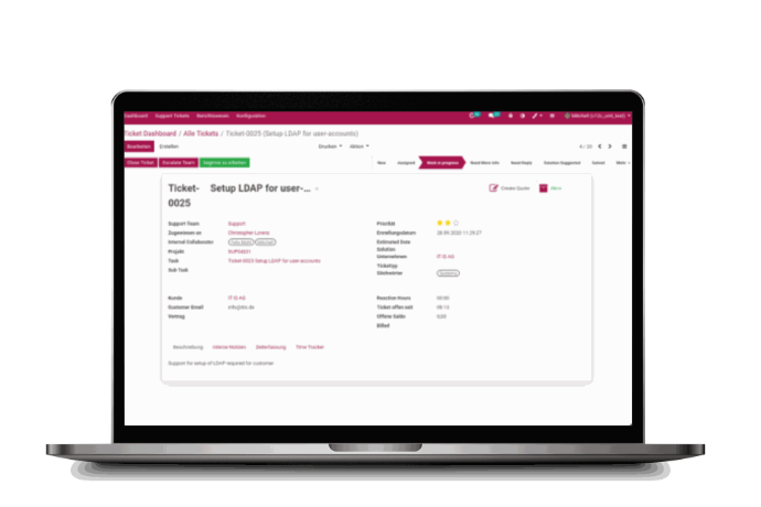 Delight customers and keep your support process on point with the ITISeasy.support module. From ticket creation via email or website to full ERP integration and time-based invoicing, we bring structure and visibility to every support interaction.