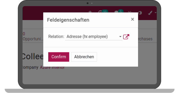 With the One2many field, a relation can also be included in the field. Here the address of the employees was selected in the dropdown.
